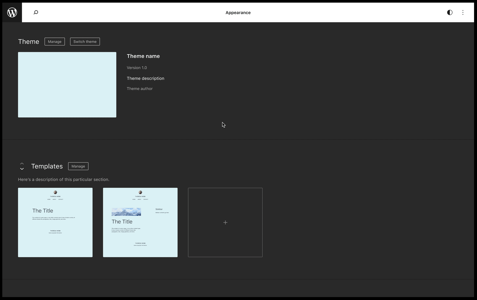 Such screens could create intuitive compartments in which to present novel features that have a lot of perceived conceptual overlap, such as reusable blocks, template parts, and block patterns.